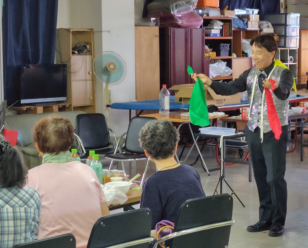 2024(令和6)年7月16日(火) あずみ苑伊奈に出演しました。上尾マジッククラブから3名の会員が参加してデイサービスご利用者の皆さんにマジックを披露しました。サロンかしわざ