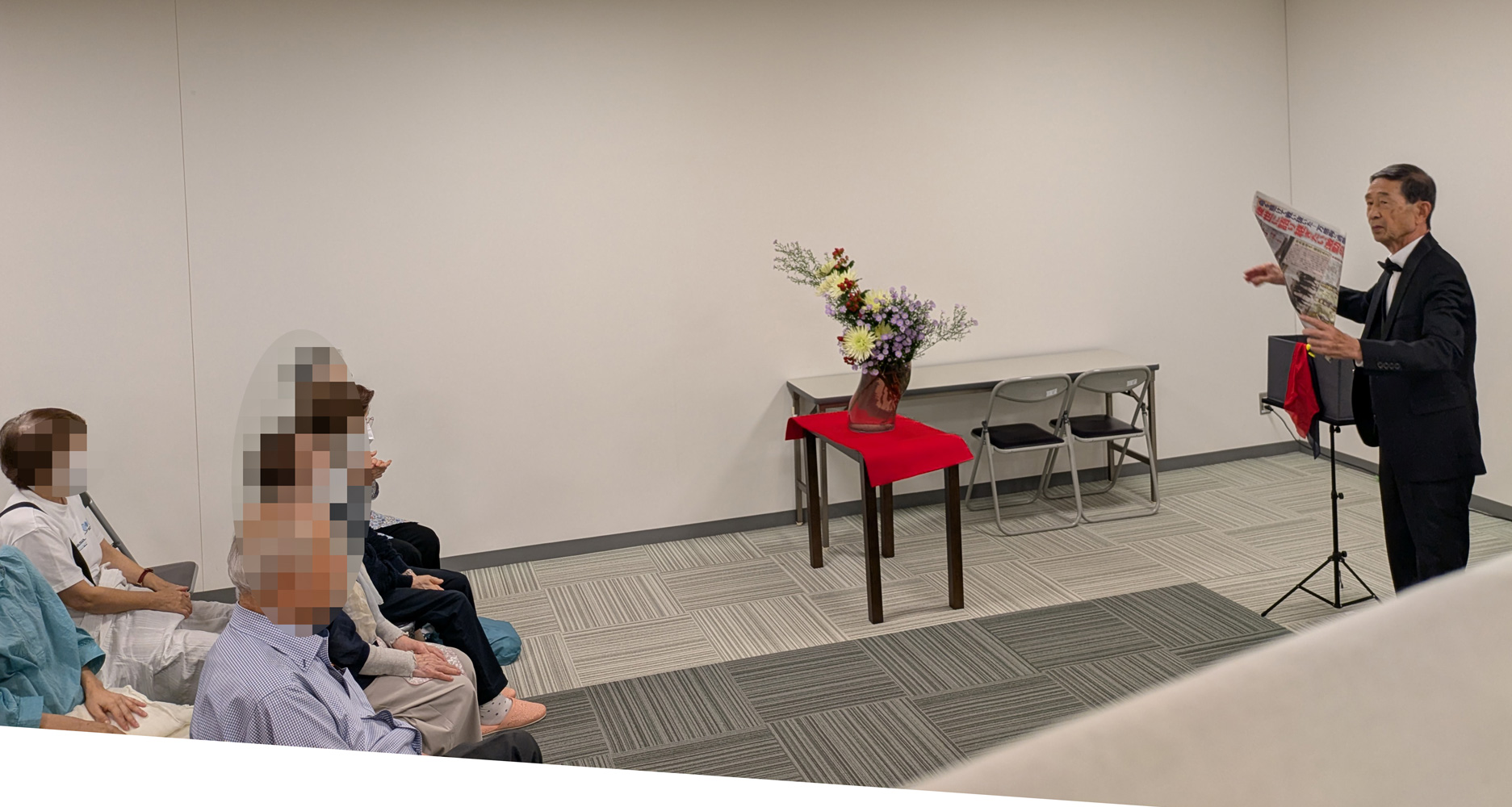 2024(令和6)年4月18日(木) 上尾マジッククラブは3名の会員でデイサービス施設 日々トレはると上尾小敷谷を訪問し、マジックショーをご覧に入れました。この施設からの依頼は初めて。利用者の皆さんもとても楽しまれた様子で、最後には「ブラボー!」「アンコール!」の連呼をいただきました。