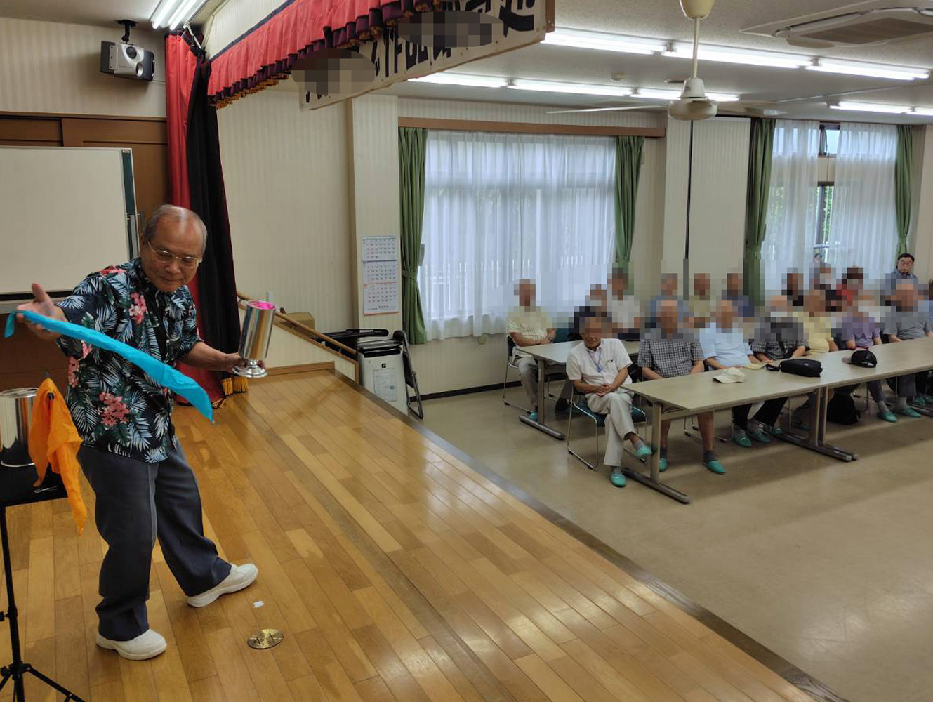 2022(令和4)年9月11日(日) 上尾向原自治会で敬老会が催され、上尾マジッククラブから3名の会員が参加してマジックを披露しました。敬老会への出演は3年ぶり。今年も中止するという自治会もまだ多く、出演はここ一箇所だけでした。