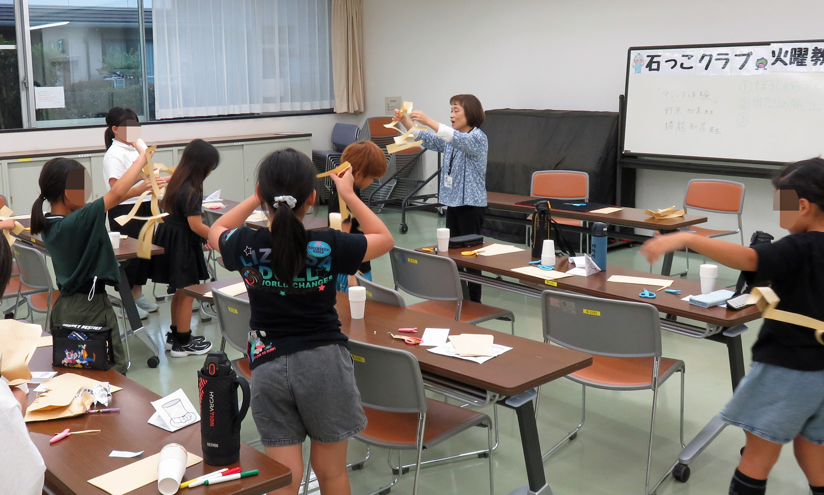 2024(令和6)年9月24日(火)、26日(木) 大石公民館放課後子供教室「石っこクラブ」でマジック教室が行われ、上尾マジッククラブが講師を務めました。ゲストに能勢裕里江さん