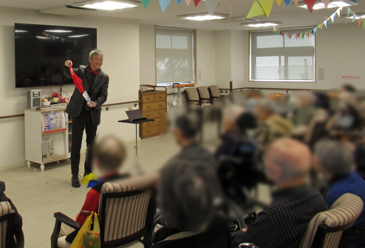 2026(令和8)年1月18日(日) 上尾マジッククラブはケアガーデン宮原別所町(サービス付き高齢者住宅)で、30名弱の入居者の皆さんにマジックをご覧にいれました。新年会